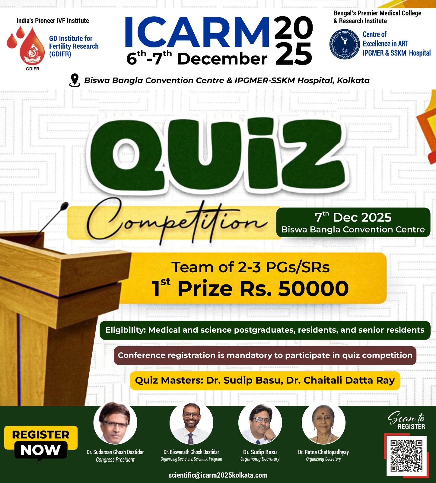 ICARM is the flagship IVF congress of the Ghosh Dastidar Institute for Fertility Research (GDIFR), India's pioneer IVF Institute, credited with delivering India's 3rd IVF baby in 1986 and 2nd ICSI baby in 1995.